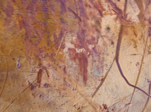 I was afraid I had the ‘just mud’ without enough contrast or spark there. SO it is time to take a photo with the handy i-phone and go back to the house. These are the pics I took without any lighting on them…just the light from the windows coming in but not strongly….. the full painting and a top and bottom detail shot.